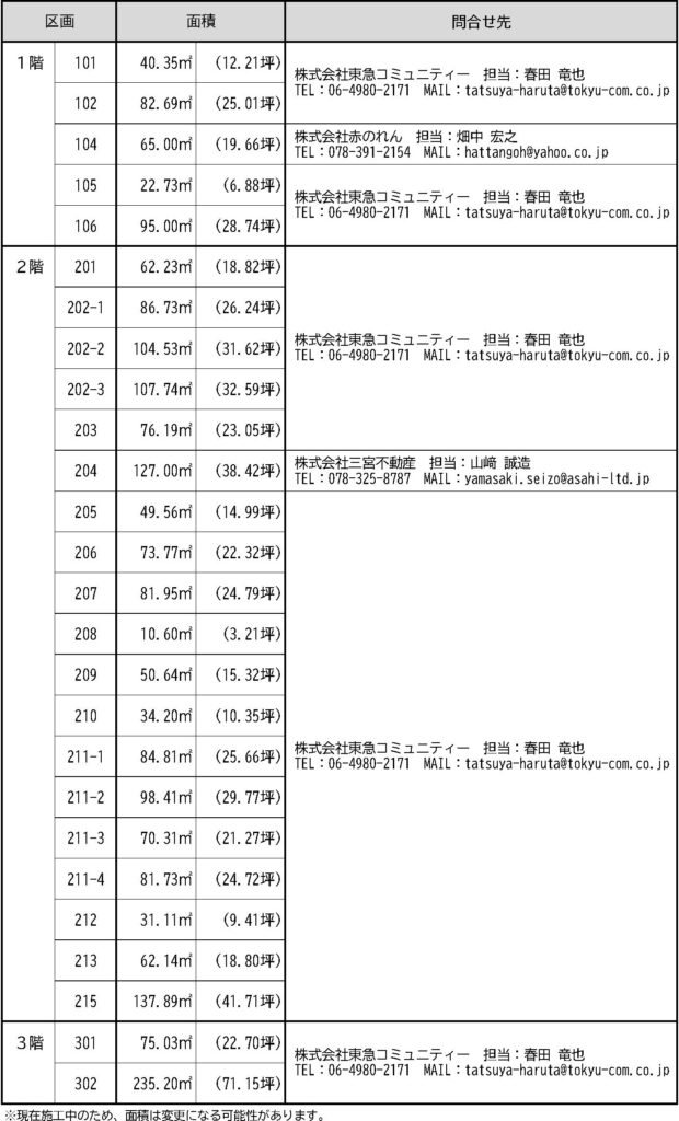 テナント出店問合せ